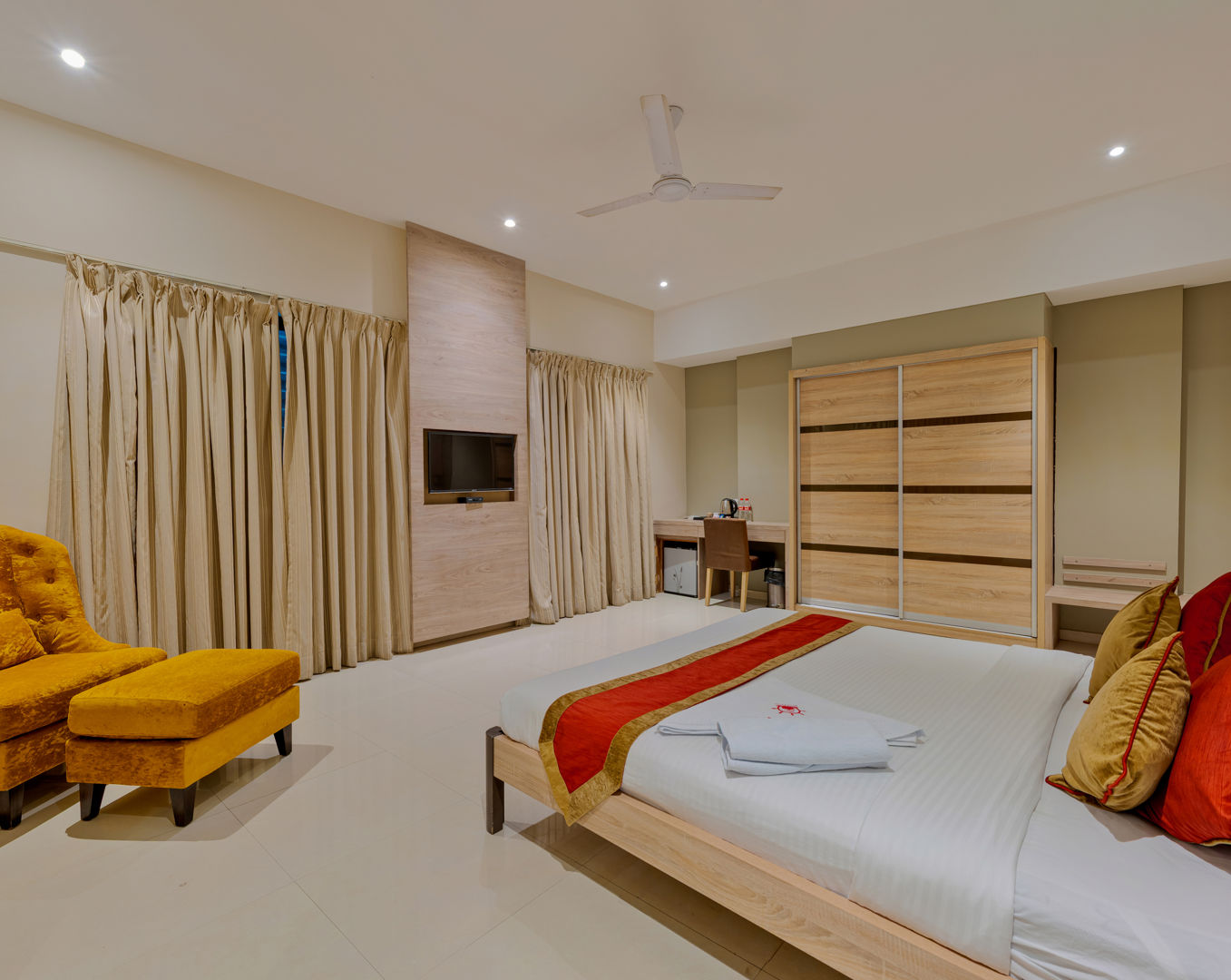 The Grand Suite redefines luxury with its expansive layout, elegant design, and elevated comforts. Perfectly tailored for discerning guests, the suite features a separate living room, lavish bedroom, and a spacious dining area, offering both privacy and sophistication. Thoughtfully curated décor, rich textures, and ambient lighting create a serene and upscale atmosphere. Floor-to-ceiling windows provide stunning views and natural light, enhancing the overall experience. The bathroom is a sanctuary in itself, equipped with a soaking tub, rain shower, and premium bath amenities. With exceptional attention to detail and personalized service, the Grand Suite offers a truly indulgent stay for both business and leisure travelers.